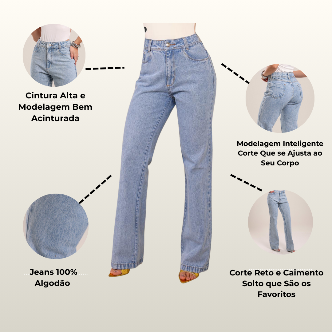 Calça Jeans Feminina Wide Leg Cintura Alta